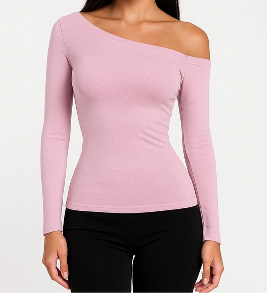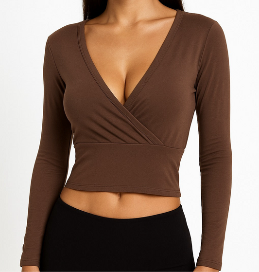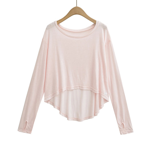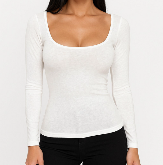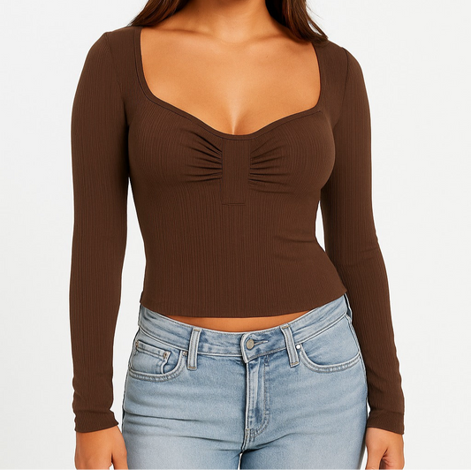 חולצה ארוכה עם כיווץ מחטב במחשוף