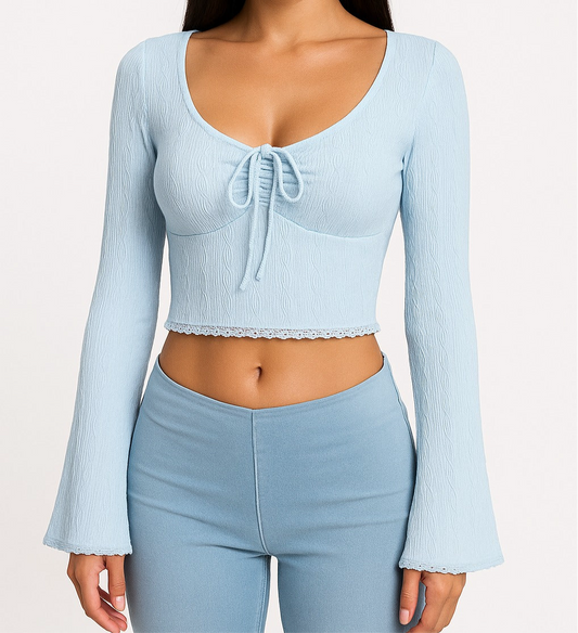חולצה אסתטית עם קשירה בחזה ועיטורי תחרה