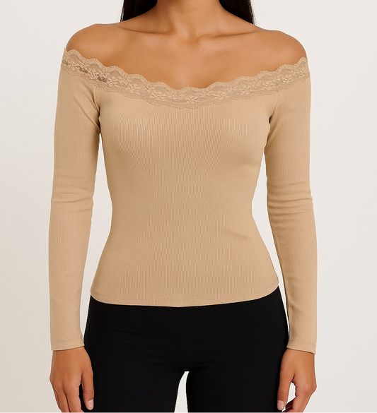 חולצה ארוכה עם מחשוף ותחרה מבצבצת