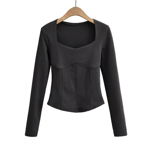 חולצה ארוכה עם פתח במחשוף וגוזיה מובנת
