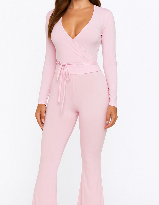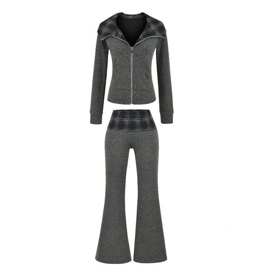 סט מכנסיים מתרחבים וג׳קט משובצים