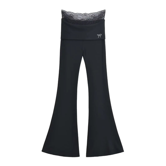 מכנסיים מתרחבים עם פפיון ועיטורי תחרה