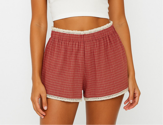 שורט משבצות עם עיטורי תחרה