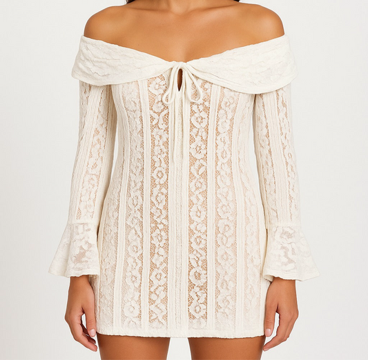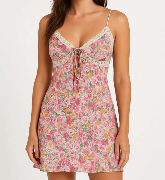שמלה קיצית פרחונית עם מחשוף ותחרה