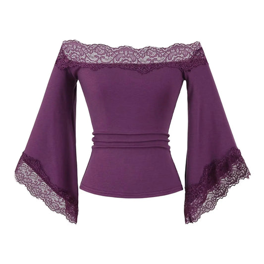 חולצה עם שרוולים ארוכים מתרחבים ועיטורי תחרה