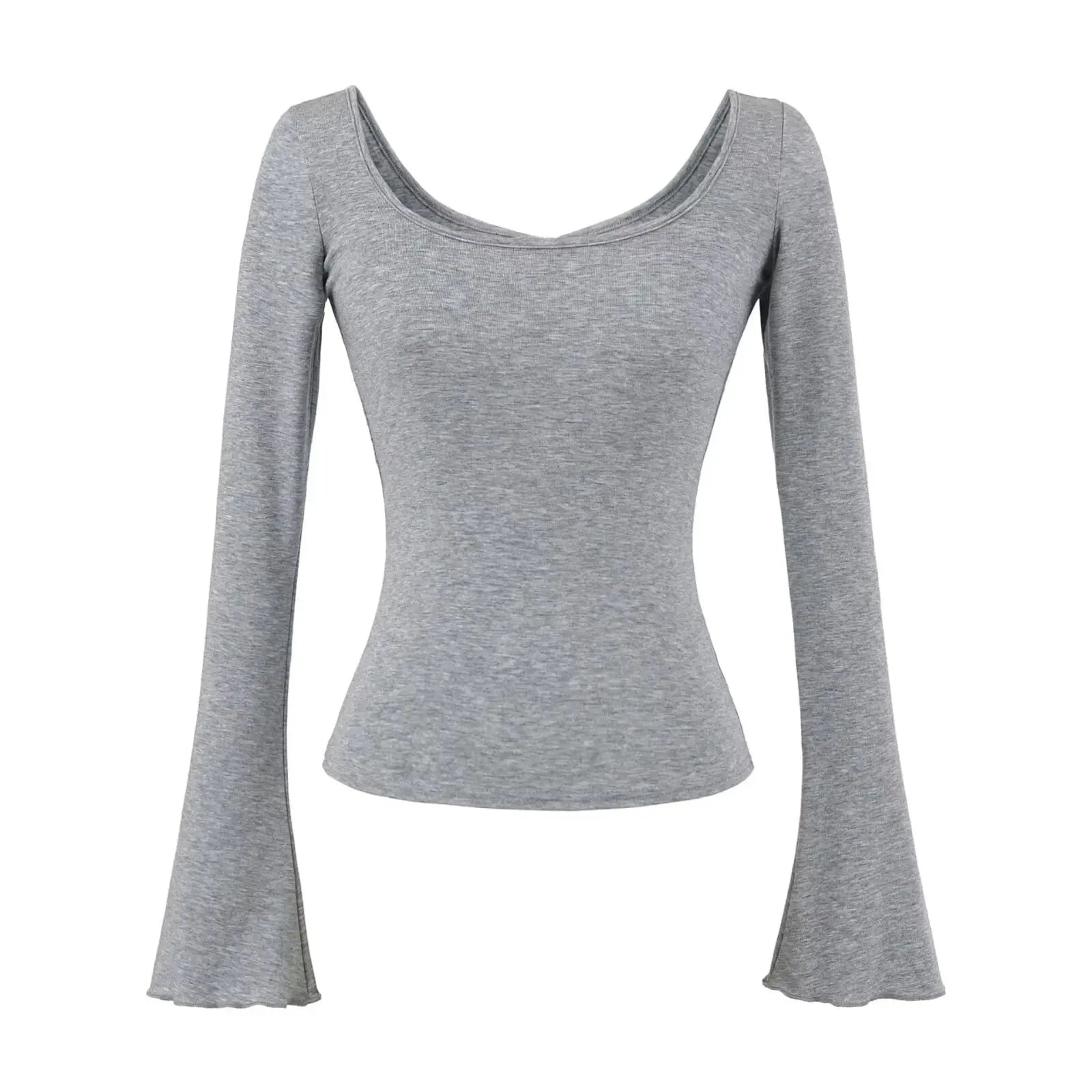 חולצה עם שרוולים מתרחבים ופתח בגב
